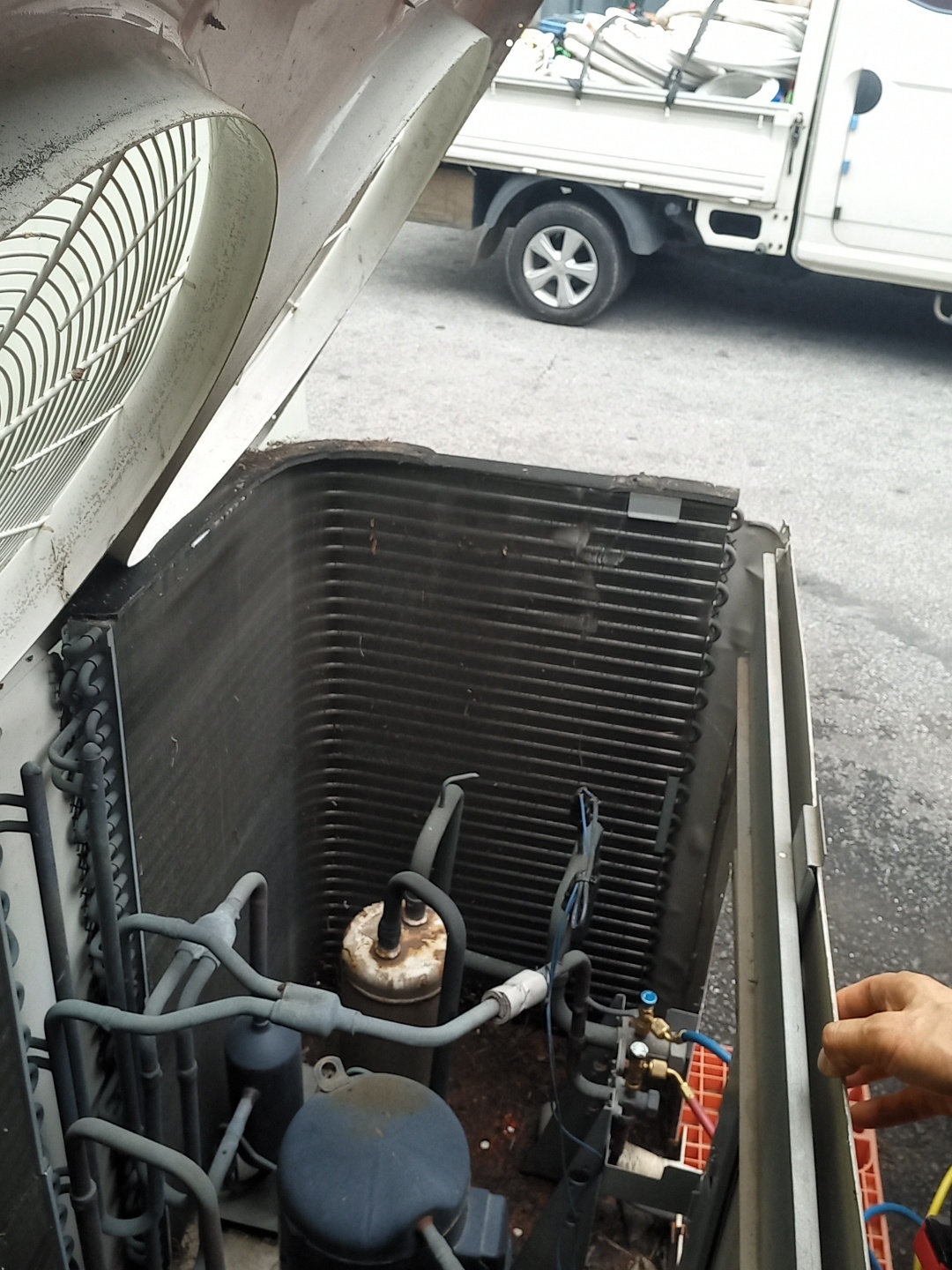 확인 후에 에어컨 청소를 시작해줍니다.
