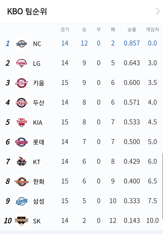 스윕해서 어서 NC를 따라잡았으면 좋겠네요.
